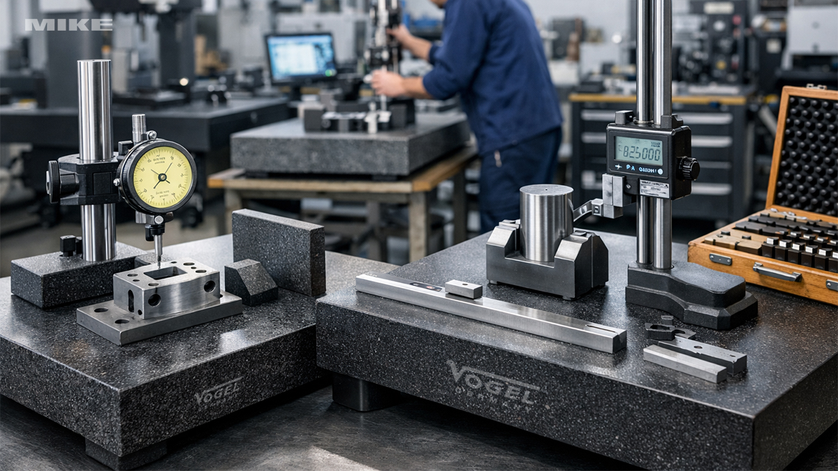 Ngoài các loại bàn map truyền thống, thư mục còn có các thiết bị đo chuẩn và khối chuẩn hỗ trợ cho các phép đo đặc biệt. Bàn đo chuẩn gá đồng hồ so Vogel Germany 25081 và bàn đo chuyên dụng 258051 được thiết kế để gá giữ đồng hồ so, đáp ứng các tiêu chuẩn về độ thẳng và độ phẳng. Các thiết bị này phù hợp cho các phép đo kiểm tra độ thẳng, độ phẳng trong nhiều ứng dụng khác nhau.