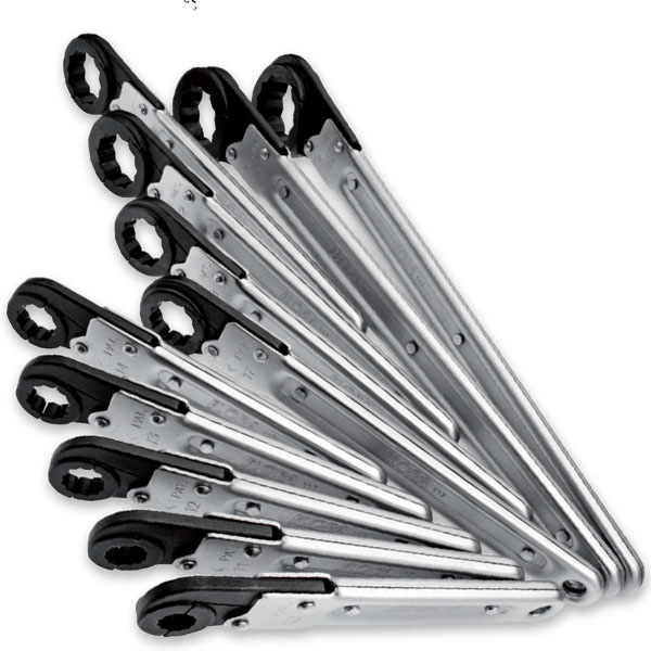 Bộ cờ lê mở ống kiểu đầu vòng tự động, mở đóng được, dùng cho đường ống, co nối các loại. Dòng này có 2 bộ với models và số lượng khác nhau. Tùy theo nhu cầu, bạn chọn mã hàng phù hợp. Cụ thể model 117-S6 là gồm 6 cây từ 10mm đến 17mm. Mã hàng 117-S11 gồm 11 thành phần bên trong và có size từ 10mm đến 32mm.