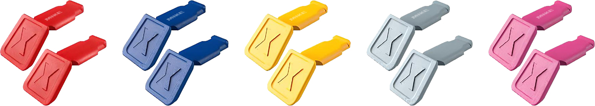 Mỗi bộ bao gồm 2 đai gài cho mỗi màu: xanh dương, xám, đỏ, vàng và hồng tím. Các đai gài làm từ vật liệu nhựa tổng hợp có độ đàn hồi cao. Dễ dàng gắn chắc vào phần mở rộng của tay cầm mà không ảnh hưởng đến thao tác cầm nắm. Thiết kế nhỏ gọn, đơn giản nhưng hiệu quả. Phân biệt dụng cụ theo người sử dụng, tổ đội công tác hoặc chức năng sử dụng riêng biệt.