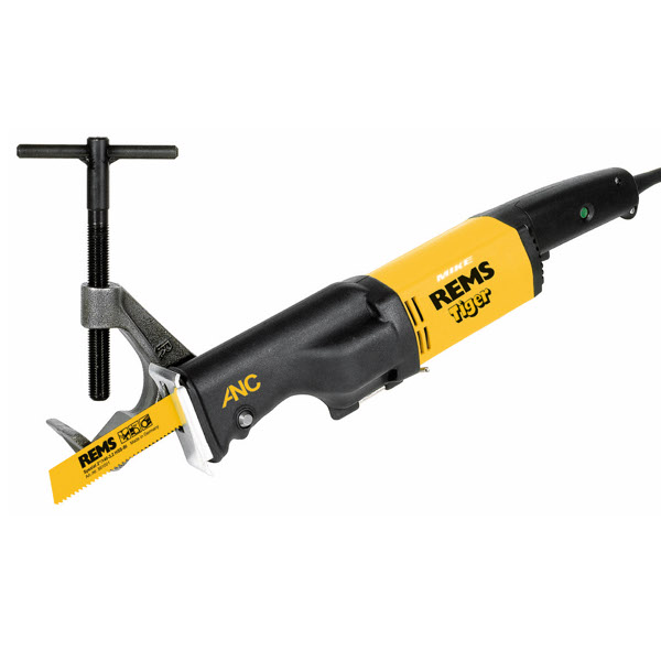 Bộ máy cưa kiếm chạy điện REMS Tiger set kèm êto kẹp phôi ống. Bộ REMS Tiger. Máy cưa ống chạy điện cho việc cưa dễ dàng, nhanh chóng và vuông góc với hỗ trợ hướng dẫn và cho cưa tự do. Đơn vị truyền động với tay cầm máy thẳng, hệ thống trục dao chuyển động không cần bảo dưỡng, chống nước và bụi, lắp đặt với hệ thống truyền động với vòng bi kim loại toàn diện (ANC), chế độ chuyển động quỹ đạo,