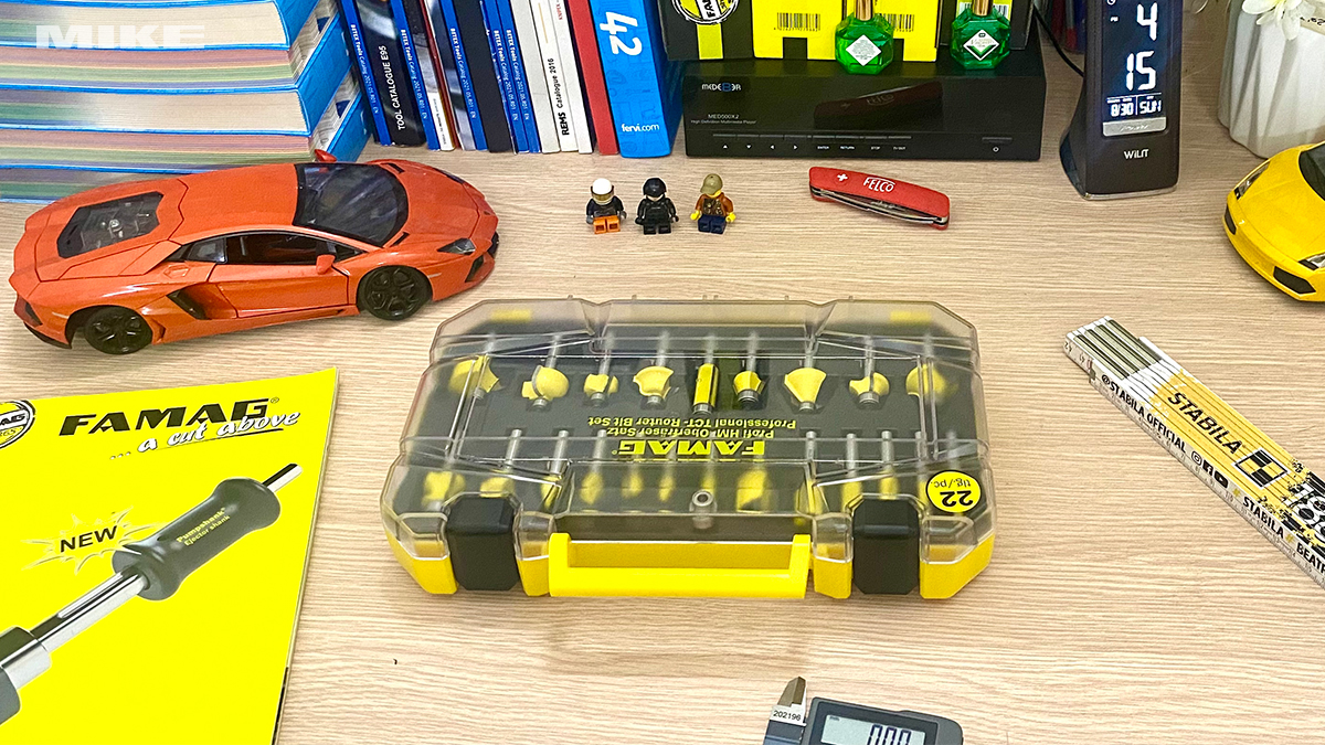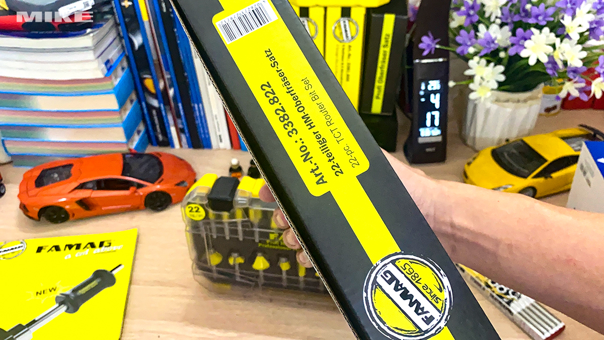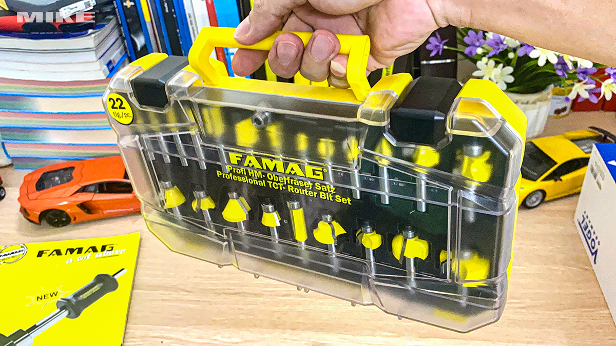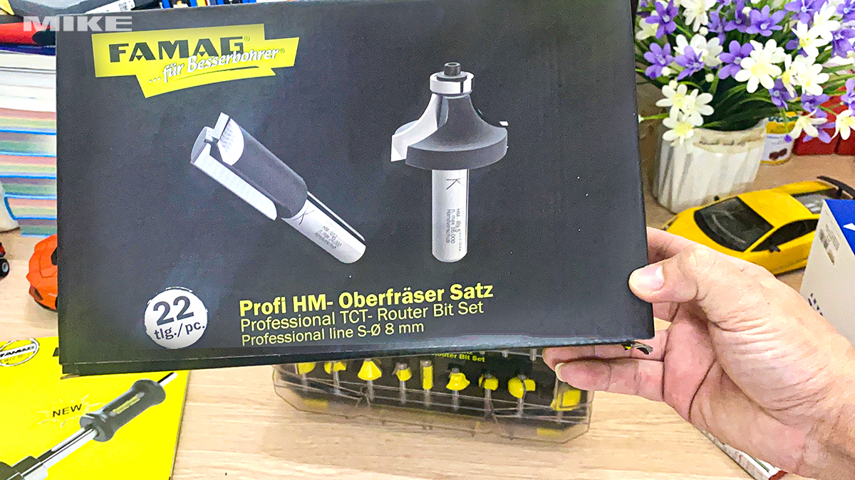 Bộ 22 mũi soi, phào gỗ đáp ứng hầu hết các tác vụ thông dụng nhất của người làm mộc. Thêm vào đó, hãng FAMAG cũng trang bị vòng bi dự phòng. Bạn thay thế khi cần cho các mũi chạy chỉ.