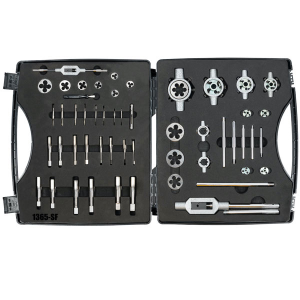 Bộ taro bàn ren hệ inch bao gồm 50 chi tiết từ Mf3 đến Mf20. Đầy đủ các phụ kiện tay quay tato, ống dẫn hướng, đựng trong vali chuyên dụng. ELORA sản xuất bộ này với 2 phiên bản hộp đựng, bằng nhựa ABS hoặc bằng thép như hình ảnh dưới đây.