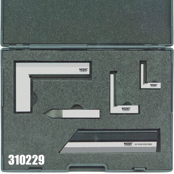 Bộ thước eke kỹ thuật 310229 gồm 5 chi tiết trong vali chuyên dụng. Tuyển lựa các dụng cụ đo thường xuyên dùng nhất đi gần nhau. Gồm 1 rà phẳng, 03 eke vát mép loại không có chân đế, 01 mũi vạch dấu trên kim loại. Đáp ứng tiêu chuẩn DIN 874/00, DIN 875/00.