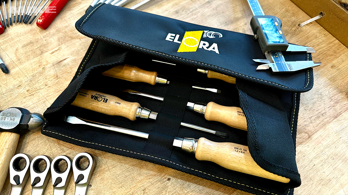 Bộ tua vít cán gỗ ELORA 600-S6, bản đặc biệt, giới hạn nhân kỷ niệm 100 năm thành lập ELORA. Các chi tiết đựng trong túi vải giả da, mềm và có ngăn riêng. Cán bằng gỗ tiện đã qua xử lý, gia công thủ công toàn phần để đảm bảo tính độc đáo cho từ bộ.
