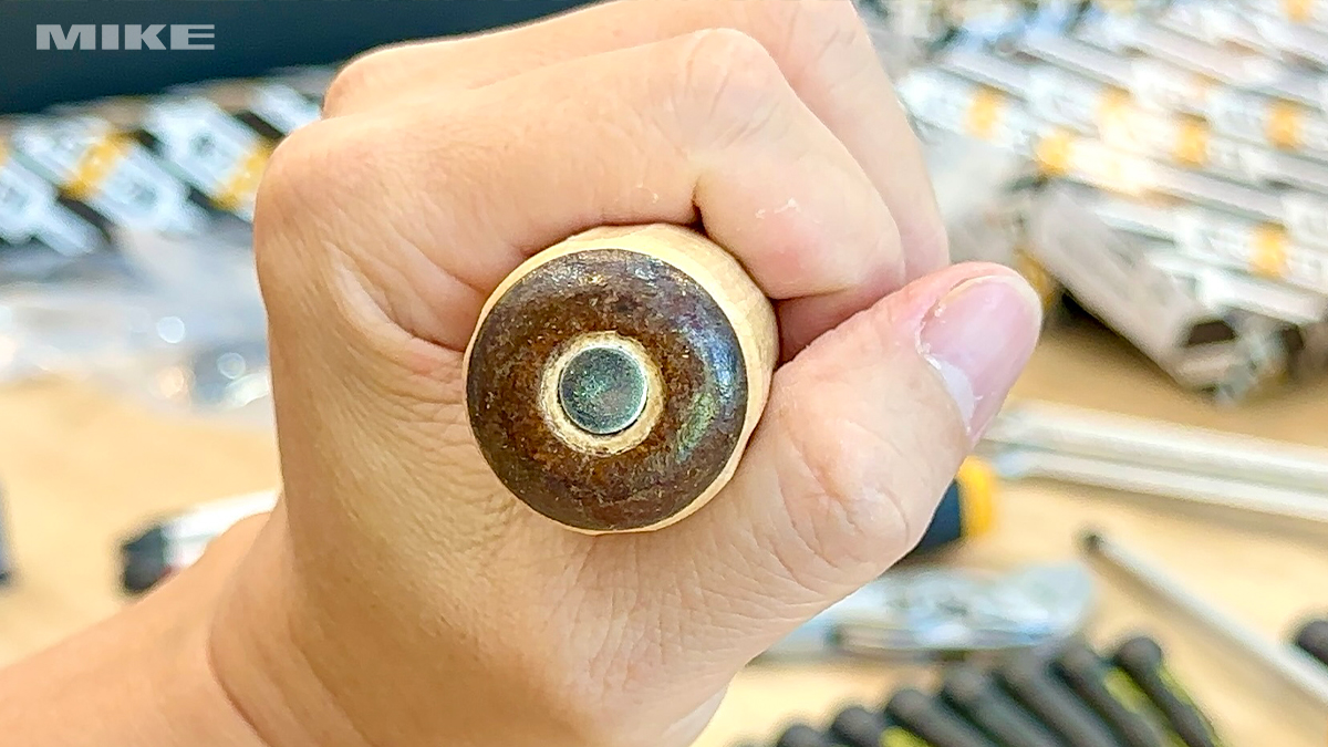 Tay cầm phần chuôi được bọc lớp da thuộc, mục đích chống rằm gỗ găm vào tay người dùng. Tuốc nơ vít có thân thép xuyên suốt cán, dùng kết hợp với búa hoặc chày gỗ để tăng lực xung kích khi tháo mở ốc chết. Made in Germany. |