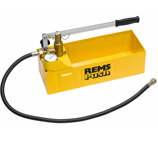 Bơm kiểm tra áp lực đường ống tới 60 bar, REMS Push. Chuyên sử dụng cho xây dựng mới hoặc bảo dưỡng, sửa chữa, thay thế. Thiết kế cho nhiều dung dịch khác nhau có độ nhớt và nồng độ axit phù hợp trong khoảng cho phép. Máy dùng được cả với dầu, nước hay glycol.