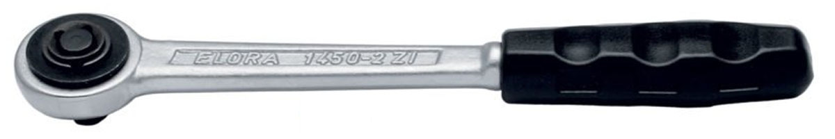 Cần tự động ELORA 1450-2Zi, đầu vuông 1/4 inch, dài 145mm. Tay cầm bọc nhựa cứng, đúc theo khuôn nắm tay. Thiết kế cổ điển, được sử dụng trong suốt hàng chục năm không thay đổi. Thiết kế đặc biệt với đầu vuông 1/4 inch, đảo chiều bằng cách nhấn trượt qua, lại.
