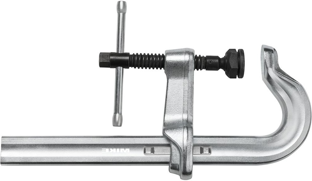 Cảo chữ G siêu cứng BESSEY STBVC, lực kẹp 35000N. Thiết diện thanh ray 40x20mm bằng thép, rãnh ở giữa, gia cố bằng 2 viền. Dùng cho các ứng dụng hạng nặng như kẹp các tấm kim loại lớn, các loại máy móc. Lực kẹp giữ phôi lên tới 35000N, tương đương 3000kg. Trục lớn với bước ren vuông, má kẹp bằng thép có thể thay đổi.