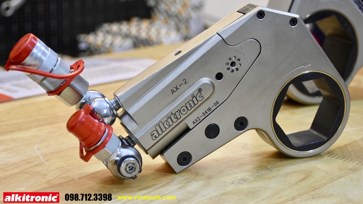 AX2 cờ lê thủy lực loại mỏng low-profile, momen xoắn 260-2600Nm. Khác với đầu xiết ốc dùng socket, loại này bạn cần phải lựa chọn thêm phần lục giác phù hợp với size bulong đai ốc bạn cần vặn. Áp suất làm việc max 700 bar. Khớp nối riêng lẻ, linh hoạt , xoay 360°, Vỏ được làm bằng hợp kim nhôm. Ứng dụng cho size bulong từ 27 – 55mm.