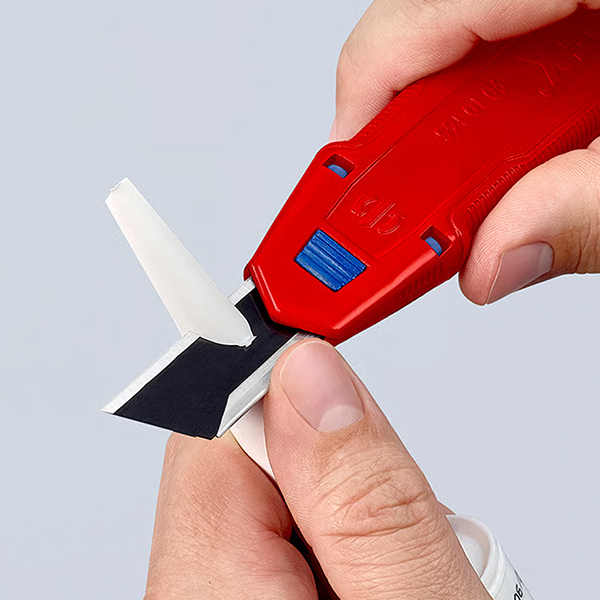 Dao rọc giấy đa năng Knipex CutiX 90 10 165 BK hỗ trợ cắt chính xác trong môi trường kỹ thuật, từ thi công cơ điện, hoàn thiện nội thất, bảo trì nhà xưởng cho đến đóng gói công nghiệp. Lưỡi sắc bén, bẻ gãy, dài 18 mm. Xử lý tốt nhiều dạng vật liệu như bìa carton, nhựa tấm, cao su, vinyl, thảm, vật liệu cách nhiệt hay bao bì nhiều lớp. Ngoài ra dùng để mở hộp, tỉa mép chi tiết hoặc cạo bavia tại các vị trí hẹp.