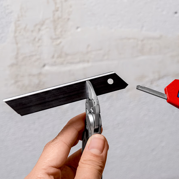 Lưỡi của Knipex CutiX 90 10 165 BK tương thích chuẩn lưỡi bẻ gãy 18 mm trên thị trường. Bao gồm lưỡi trơn, lưỡi cong và lưỡi móc của nhiều nhà sản xuất khác nhau. Ngay khi xuất xưởng, Knipex CutiX 90 10 165 BK đã được trang bị lưỡi bẻ gãy chất lượng cao cùng 2 lưỡi dự phòng nằm trong khoang chứa ở cán.