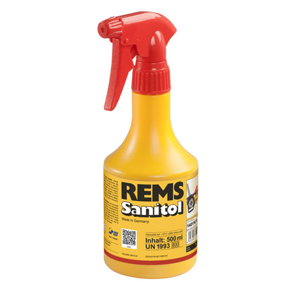 REMS Sanitol - Không chứa dầu khoáng, không chứa ethanol. Hoàn toàn hòa tan trong nước. Hiệu quả cao về bôi trơn và làm mát. Được phát triển đặc biệt cho ống cấp nước uống nhưng cũng rất phù hợp cho việc cắt ren chung. Hiệu quả cao về bôi trơn và làm mát. Quan trọng cho rãnh ren sạch, tuổi thọ dài cho khuôn cắt, dụng cụ và máy móc.