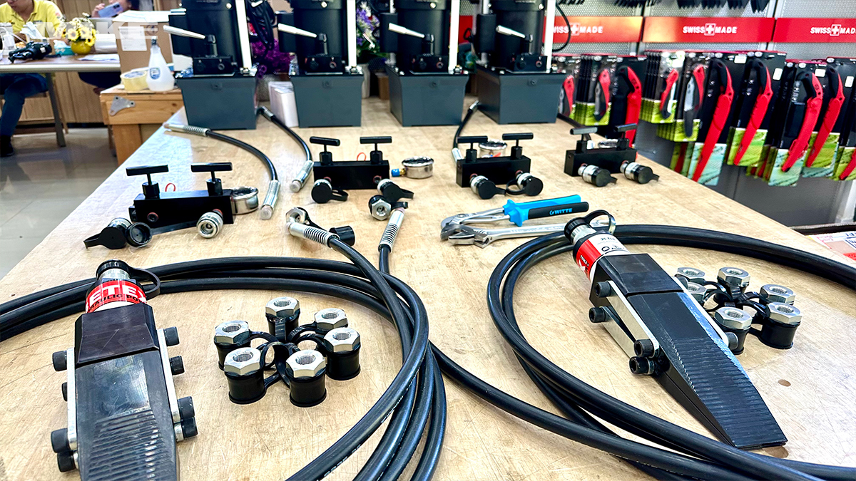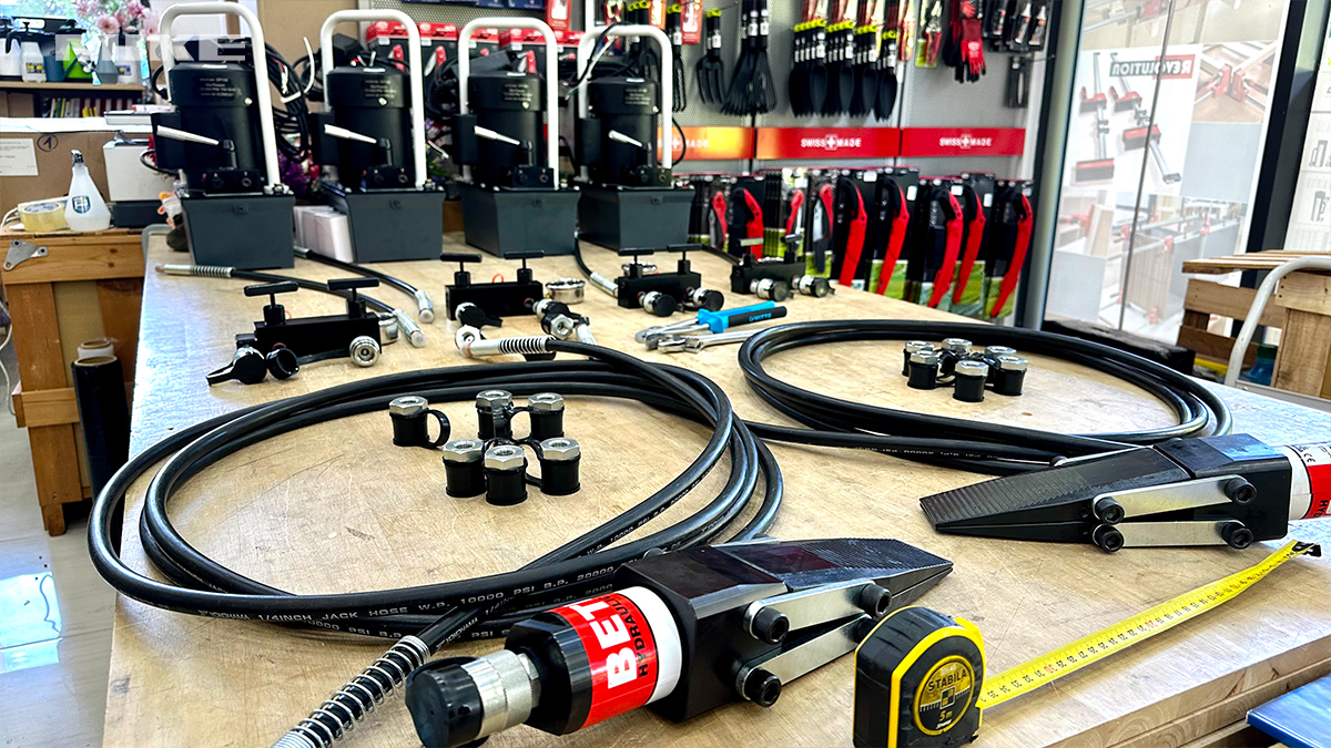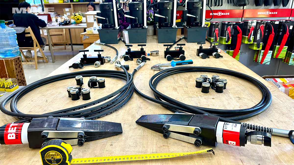 Đầu tách cần sử dụng bơm thủy lực đơn động 700 bar, tương thích với các hệ thống bơm tay hoặc bơm điện của BETEX. Ngoài bản đơn lẻ, nhà sản xuất còn cung cấp tùy chọn set và duo-set gồm bơm, ống thủy lực, đồng hồ đo áp, manifold và khối chặn an toàn bậc thang, giúp tối ưu hiệu quả và an toàn cho công việc.