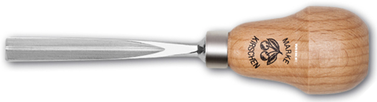 Đục chạm điêu khắc gỗ lưỡi chữ V bằng thép gió Kirschen 5639. Tay cầm bằng gỗ trăn, tiện hình quả lê. Vật liệu lưỡi bằng thép gió HSS. Gia công mài bóng bề mặt. Sản xuất 100% tại CHLB Đức.