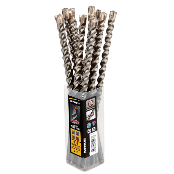 DIAGER 157L là dòng hộp 12 mũi khoan bê tông chuyên dụng, thiết kế cho máy khoan búa sử dụng chuôi SDS Plus. Mỗi mũi khoan thuộc dòng Booster Plus, có đầu hợp kim nguyên khối với 3 cạnh cắt, thích hợp khoan xuyên bê tông có cốt thép với độ chính xác và độ bền cao.