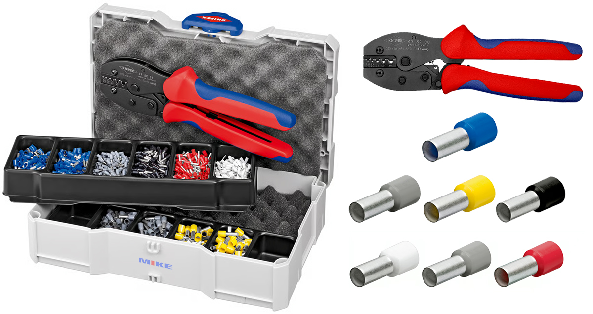 Knipex 97 90 23 là bộ dụng cụ ép cos dây điện gồm 1 kìm bấm cos PreciForce 97 52 38 và 7 ngăn cos phân loại sẵn. Hộp đựng dạng TANOS MINI-systainer® gọn gàng, khóa T-Loc một tay, phù hợp cho thợ điện và kỹ thuật viên thi công lắp đặt.