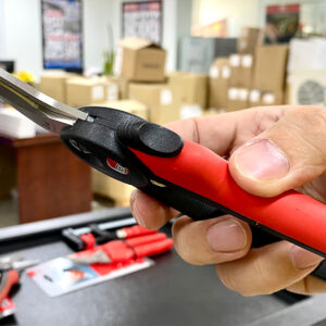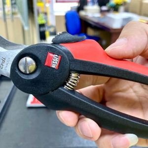 Cán cầm được bọc bằng nhựa cao cấp, 2 thành phần với màu đen cứng cáp, đỏ mềm. Thiết kế theo khuôn nắm giúp dễ cầm khi thao tác mà không bị trơn tuột bởi mồ hôi. Kéo BESSEY D48A2 phần nhựa màu đỏ có độ ma sát cao và mềm, trong khi đó phần nhựa màu đen thì cứng hơn.