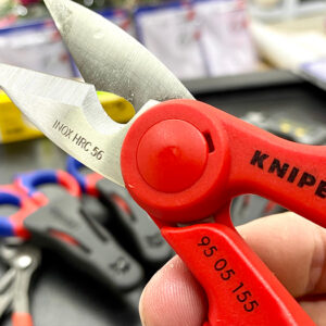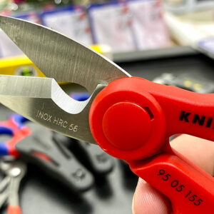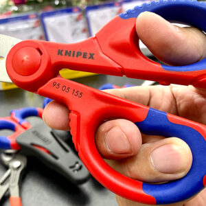 Kéo điện Knipex 95 05 155 SB chuyên dụng dành cho thợ điện. Sự kết hợp hoàn hảo giữa thiết kế thông minh. Chất liệu cao cấp và các tính năng hỗ trợ tối ưu. Thao tác linh hoạt với các loại cáp mềm nhiều lõi. Cấu tạo từ thép không gỉ, lưỡi kéo được hoàn thiện tinh xảo. Răng cưa siêu nhỏ, mịn. Tăng độ bám khi cắt và ngăn trượt vật liệu. Kéo phù hợp trong các công việc thi công và sửa chữa điện dân dụng hoặc công nghiệp.