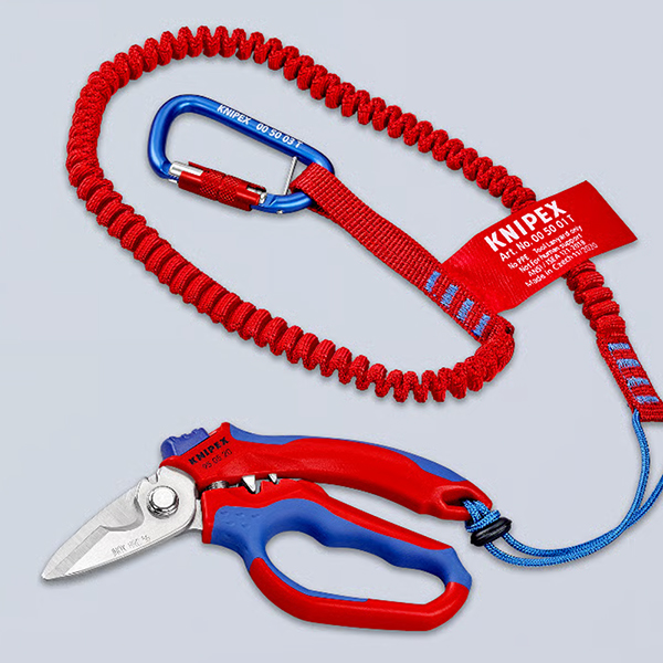 Tay cầm làm từ nhựa gia cường sợi thủy tinh, phủ lớp cao su đa thành phần. Tích hợp lò xo mở và khóa gập để bảo quản nhanh khi thao tác xong. Trên thân có điểm gắn dây chống rơi, tương thích với hệ thống treo dụng cụ Knipex. Bao đeo thắt lưng mã 00 19 75 LE có thể mua riêng nếu cần sử dụng trên cao.