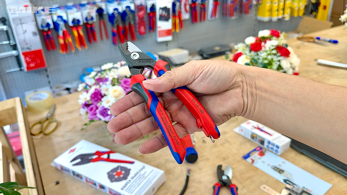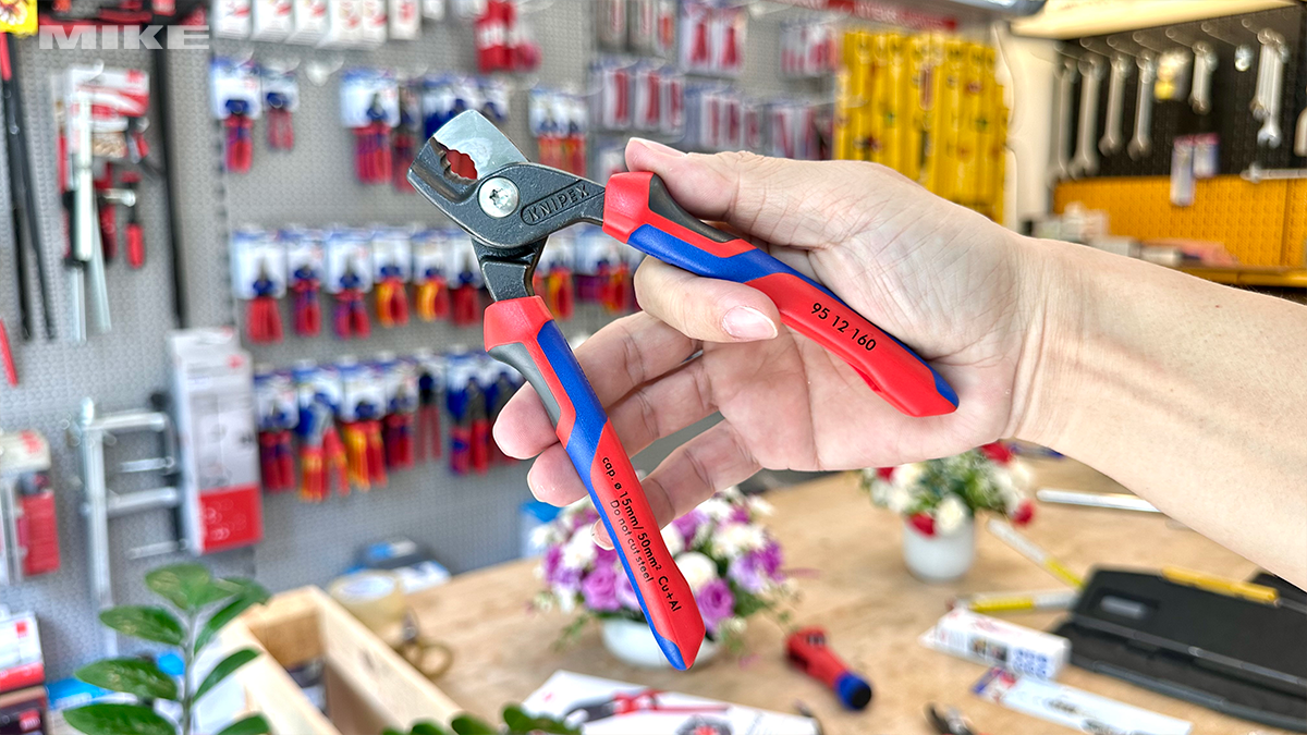 Kéo cắt cáp Knipex 95 12 160 thuộc dòng StepCut®, tập trung vào giảm lực tay khi cắt cáp đồng và nhôm. Cơ chế lưỡi bậc chia sợi dẫn theo từng bước, thay vì cắt đồng thời toàn bộ tiết diện. Cách cắt này giảm lực tay rõ rệt so với kéo cắt cáp cùng chiều dài. Kích thước chỉ 160 mm nhưng vẫn xử lý được cáp tiết diện lớn.