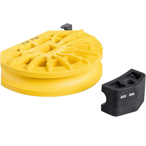 Khuôn uốn ống và đồ gá khuôn, 180°, hình dạng và chịu áp lực, được làm từ polyamide gia cường sợi thủy tinh hoặc nhôm chất lượng cao, trượt cao, 90° (Ø 21.3 R 103, Ø 26.9 R 102, Ø 33.7 R 100, Ø 35 R 100, Ø 42 R 140, Ø 42.4 R 140, Ø 50 R 135, Ø 1" R 100, Ø 1¼" R 140).