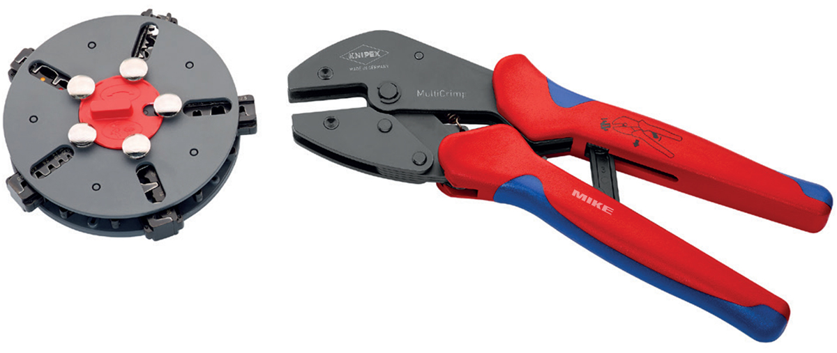 Knipex 97 33 02 thuộc dòng MultiCrimp® – dòng kìm bấm cos nổi bật nhờ tích hợp năm khuôn bấm trong một công cụ duy nhất. Thay vì phải mang theo năm cây kìm cho năm kiểu cos khác nhau. Người dùng chỉ cần một thân kìm và ổ chứa dạng ổ quay tích hợp sẵn. Mỗi khuôn được thay đổi nhanh chóng trong vài giây, hoàn toàn không cần đến dụng cụ hỗ trợ.