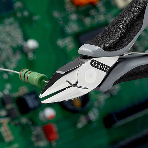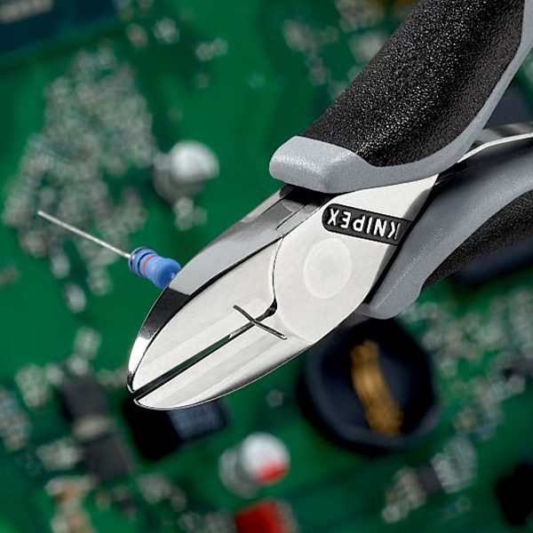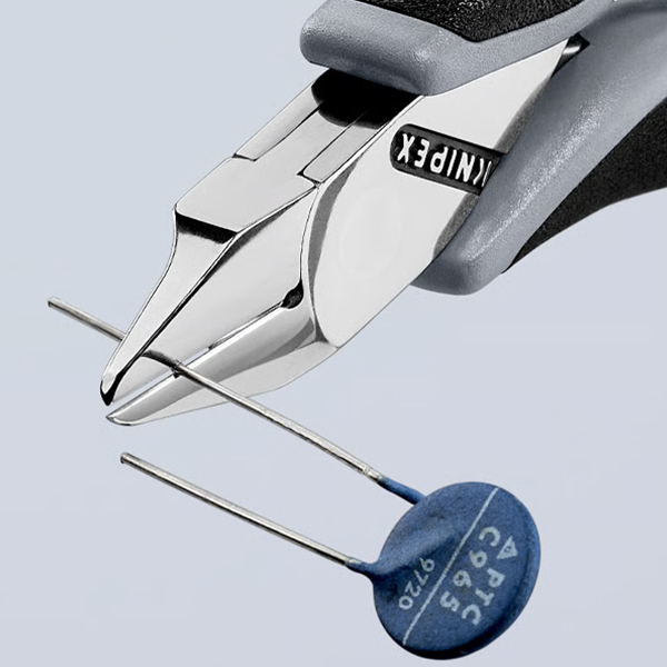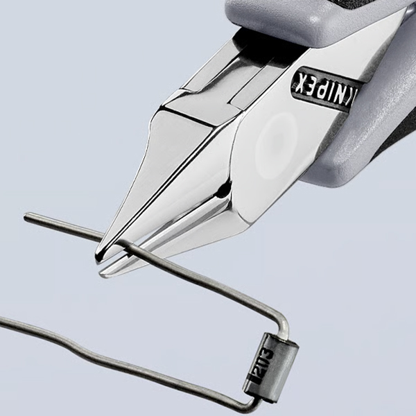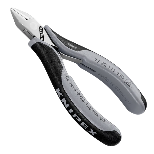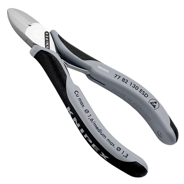 Mã: Knipex 77 ESDKìm chống tĩnh điện ESD, dùng trong phòng sạch và khu vực ESD, chuyên cắt linh kiện SMD, IC, vi mạch. Lưỡi thép bi crôm tôi 62 HRC, khớp box-joint không rơ, tay cầm công thái học dẫn điện kiểm soát tĩnh điện theo tiêu chuẩn IEC, DIN, SP Method.