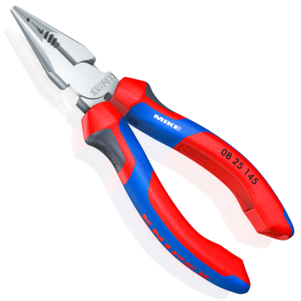 Mã: Knipex 08Kết hợp của kìm mỏ nhọn và kìm răng, dùng để cắt, giữ và kéo. Thiết kế đầu thon, mũi dài chống xoắn, thao tác chính xác. Lưỡi cắt cứng 61 HRC, rãnh kéo đinh tiện dụng. Có phiên bản cán cách điện đạt chuẩn VDE và tùy chọn móc gắn dây chống rơi. DIN ISO 5746.