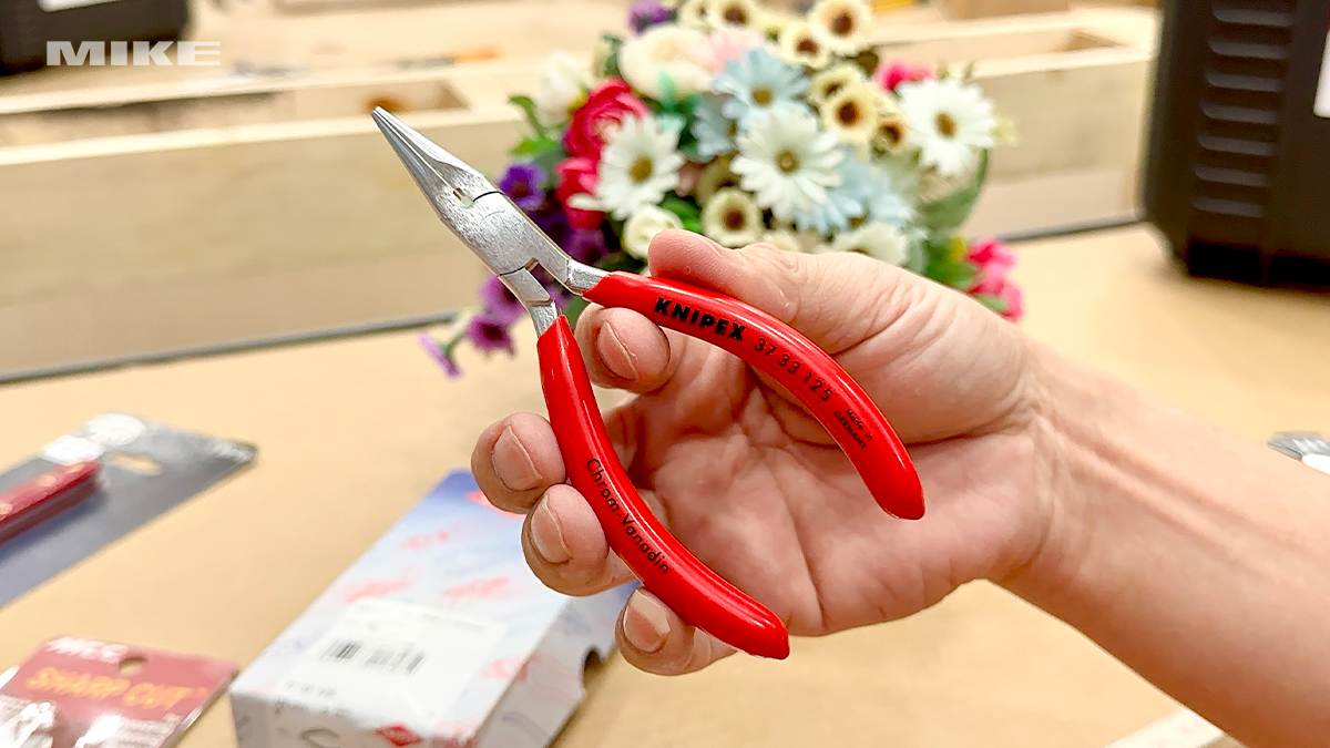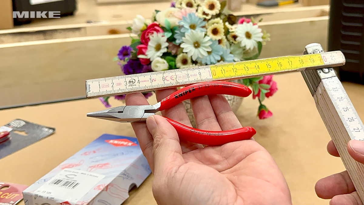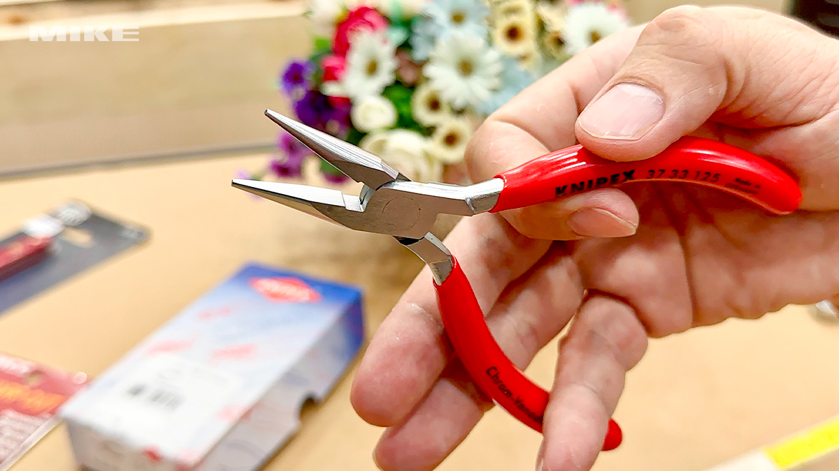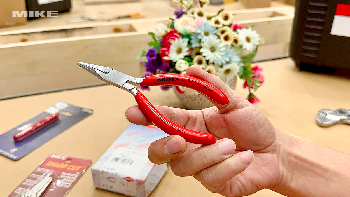 • Knipex 37 33 125 có đầu kìm nhỏ nhất (rộng 2 mm, dày 1.6 mm), phù hợp thao tác cực kỳ tinh vi. Không có răng, không gây vết hằn. Ưu tiên cho công việc lắp ráp linh kiện điện tử, vi cơ khí, đồng hồ.
