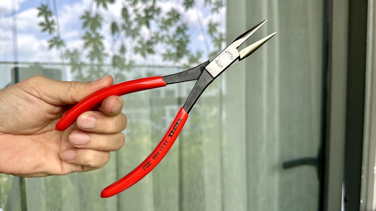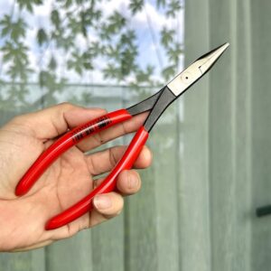 Kìm mũi nhọn Knipex 28 21 200 dài 200 mm, thiết kế cổ dài mảnh cho phép thao tác trong các vị trí sâu và hẹp. Hàm kìm có rãnh bám nhẹ, chống trượt khi giữ dây hoặc ống tròn. Lưỡi cắt cảm ứng nhiệt, cắt được cả dây cứng 2.2 mm. Cán kìm bọc nhựa PVC, cầm êm và cách điện cơ bản. Rất phù hợp cho cơ khí, bảo trì ô tô và ngành điện nhẹ.