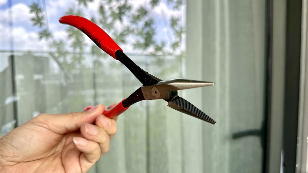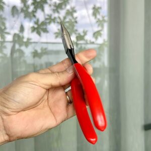 Phần hàm kìm được khía nhẹ, giúp tăng độ bám khi giữ chi tiết tròn như dây điện. Chốt hoặc ống nhỏ mà không làm hỏng bề mặt. Thân kìm rèn từ thép công cụ đặc biệt, trải qua quá trình tôi dầu nhiều giai đoạn nhằm tăng độ bền và độ đàn hồi. Cán kìm bọc nhựa PVC, cho cảm giác cầm chắc tay và chống trượt cơ bản khi thao tác.