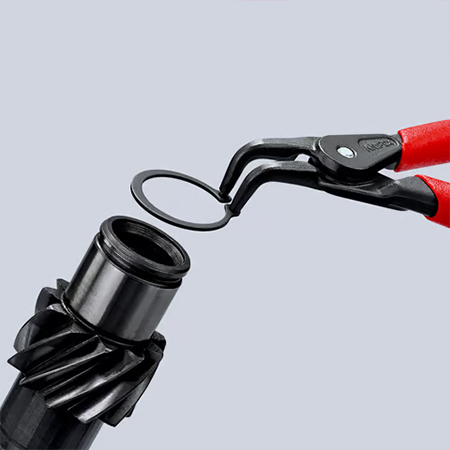 Trong thực tế, Knipex 49 21 A31 thường xuất hiện trong lắp ráp công nghiệp, sửa chữa máy tàu, nhà máy điện, xưởng cơ khí hạng nặng, đại tu hộp số lớn hoặc bảo trì thiết bị quay công suất cao. Dải Ø40–100 mm tương ứng với các trục công nghiệp quy mô lớn. Với đầu cong 90°, kỹ thuật viên tiếp cận được rãnh phe từ hướng ngang, mở phe nhanh và chính xác mà không cần tháo quá nhiều cụm chi tiết liên quan.