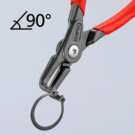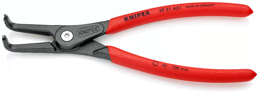 Kìm phe ngoài đầu cong Knipex 49 21 A31, đầu mũi Ø2,3 mm. Mở phe ngoài Ø40-100mm. Phục vụ thao tác lắp và tháo phe chặn ngoài trên các trục đường kính lớn trong môi trường bảo trì, cơ khí công nghiệp và lắp ráp thiết bị.