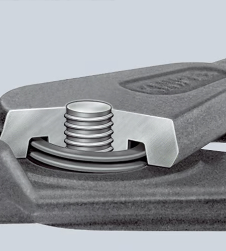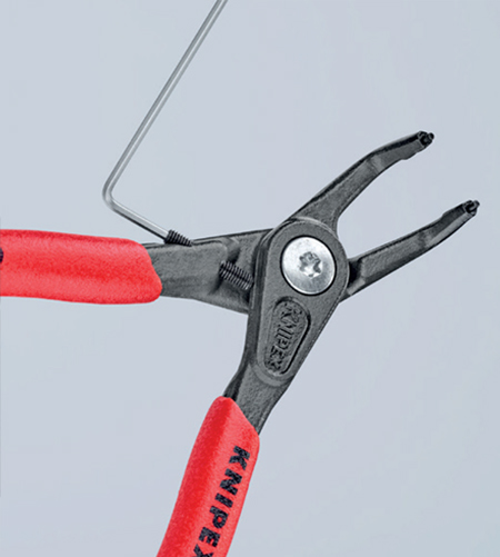 Điểm kỹ thuật độc đáo trên Knipex 49 31 A nằm ở cơ cấu chặn quá mở (overexpansion guard). Khi mở phe ngoài, vượt quá độ mở cần thiết dễ gây biến dạng dẻo, làm giảm lực đàn hồi và ảnh hưởng khả năng “ôm” rãnh trục.