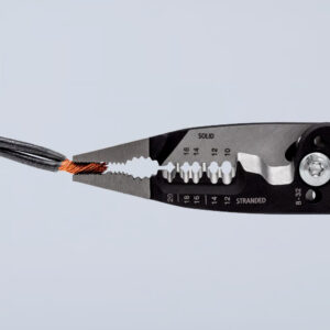Kìm cắt tuốt dây đa năng Knipex 13 71 8 – Dụng cụ đa năng cho kỹ thuật điện và lắp đặt. WireStripper kết hợp ba chức năng trong một dụng cụ duy nhất: tuốt dây, cắt dây và kẹp vật liệu. Thiết kế theo phong cách Mỹ với rãnh định vị chính xác giúp thao tác tuốt dây nhanh gọn và kiểm soát tốt hơn. Lưỡi cắt cải tiến với hình học đặc biệt giúp tăng 50% lực cắt và giảm 25% sức tay so với các dòng kìm tuốt dây thông thường.