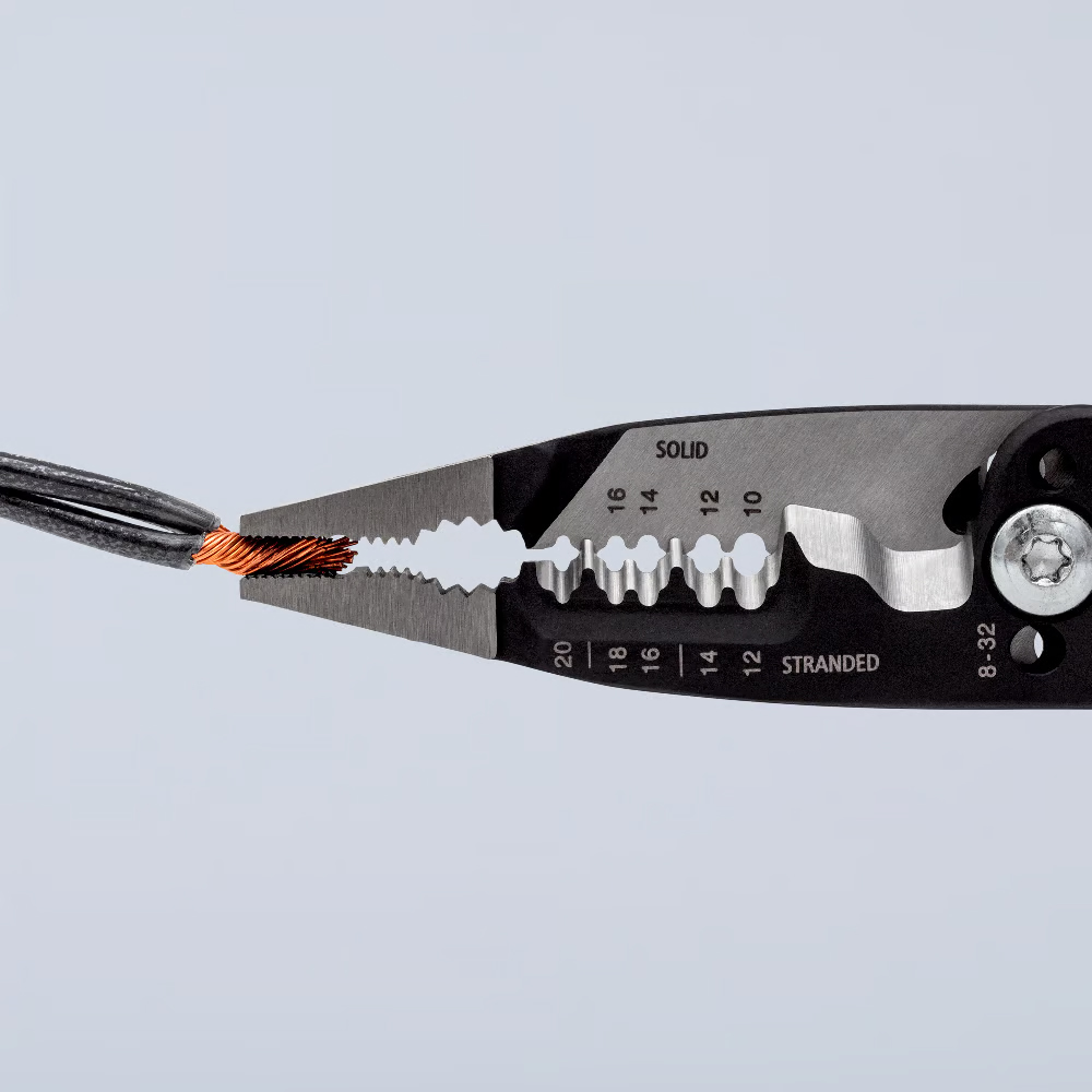 Kìm cắt nhanh và không ba via với các loại ty ren. Vít ren UNC 6-32 và 8-32 (lớp chịu lực đến 4.6). Các rãnh tuốt được mài chính xác, xử lý dây dẫn rắn từ 18 đến 10 AWG và dây mềm từ 20 đến 12 AWG. Phần lưỡi cắt chính cắt tốt dây đồng và nhôm nhiều lõi đến Ø 15 mm hoặc 50 mm² (tương đương AWG 1/0).