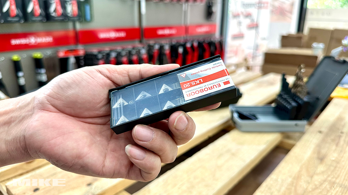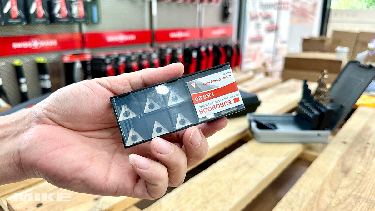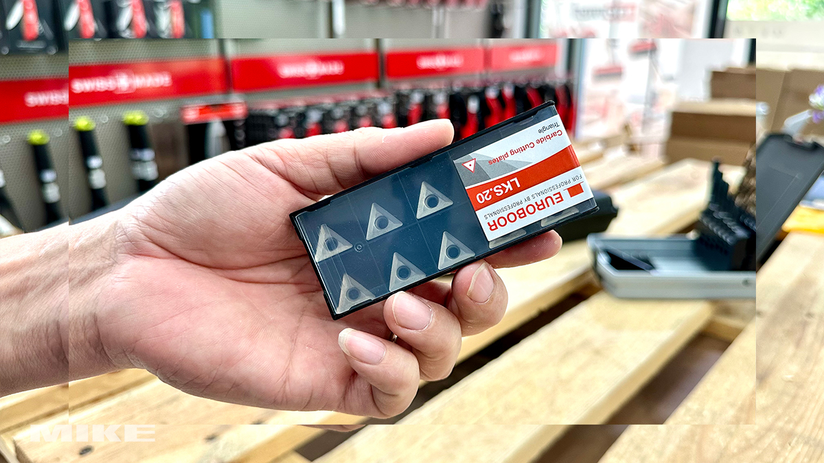 Lưỡi cắt cho máy vát mép như LKS.20 thường được làm bằng hợp kim vonfram-coban (tungsten carbide). Loại hợp kim này có độ cứng cao. Chịu mài mòn tốt và giữ lưỡi bén lâu. Phù hợp để gia công các vật liệu như thép, nhôm, hoặc hợp kim khác. Đây là tiêu chuẩn phổ biến cho phụ kiện máy vát mép của Euroboor.