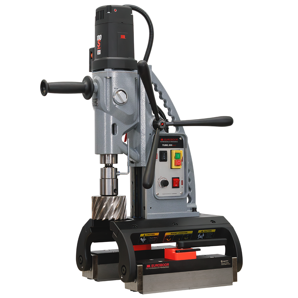 Are you facing a job that requires drilling an unusually large hole in a pipe? Well, your wish is Euroboor’s command! Where conventional pipe drilling machines reach their limit, the TUBE.100S+/T continues, offering controlled drilling up to Ø 100 mm (4”) and tapping up to M30 (1 3/16”) on both pipe constructions and flat materials.