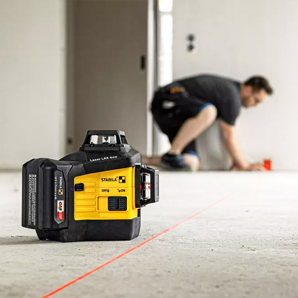 Máy chiếu tia laser LAX 600 cũng rất dễ sử dụng với mỗi nút chỉ có một chức năng. Ngoài ra, máy còn được thiết kế bền bỉ, với các khung nhôm và kính cứng và vỏ bọc STABILA chống sốc bảo vệ quang học laser khỏi bụi và va đập. Máy cũng được bảo vệ chống nước và chống bụi với lớp bảo vệ IP 65 (không bao gồm pin).