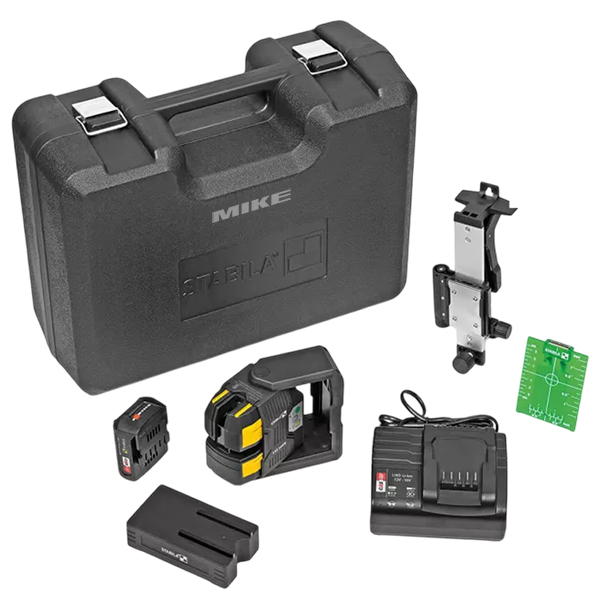 | 19984 | 7 món, kèm pin và sạc EU | Pin 12 V LI Power 2.0 Ah CAS. Sạc SC 30 CAS (EU). Đế laser SLB 500. Giá treo tường SWB 10. Tấm phản chiếu tia laser. Hộp đựng |