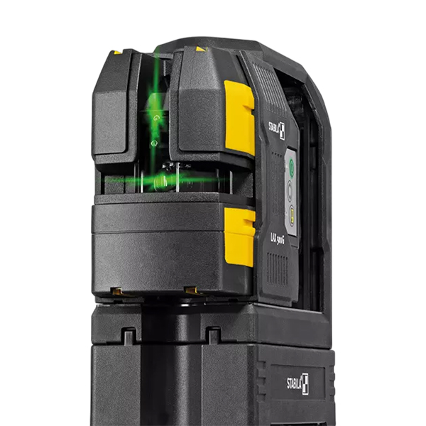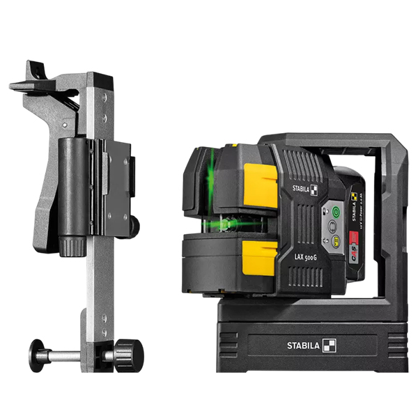 Máy cân bằng laser STABILA LAX 500 G, mặt laser chữ thập. Kết hợp điểm dọi sử dụng công nghệ tia laser xanh GREENBEAM. Vận hành bằng pin sạc CAS 12 V 2.0 Ah. Máy phát ra mặt phẳng laser vuông góc (ngang và dọc) cùng điểm dọi hướng lên và xuống. Hỗ trợ các công việc đo đạc, căn chỉnh theo phương ngang và dọc trên công trường.