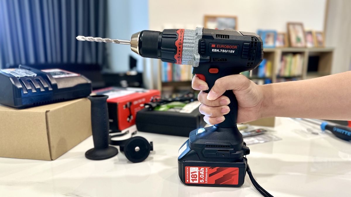 Máy khoan pin Euroboor EBH.750/18V dùng để khoan các vật liệu như gỗ, kim loại, nhựa và thực hiện thao tác bắt vít, tháo vít hiệu quả. Để sử dụng đúng và đảm bảo an toàn, hãy tuân thủ các bước hướng dẫn dưới đây. Thiết bị trở nên quen thuộc với mọi người tới mức ai nhìn thấy cũng sẽ dùng được ngay. Chắc chắn rồi, nhưng mỗi hãng sản xuất sẽ có vài nét đặc biệt nào đó độc đáo thuộc về họ. Vì vậy bạn cứ đọc hướng dẫn sử dụng kỹ trước khi vận hành là hay.