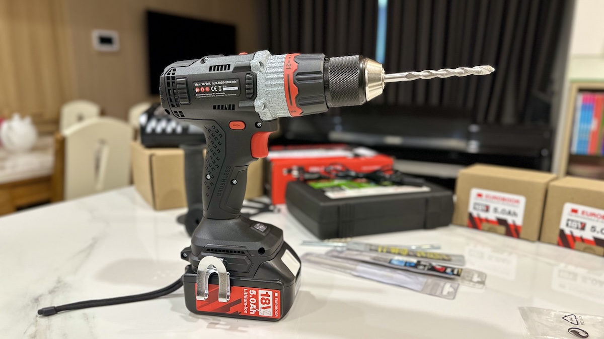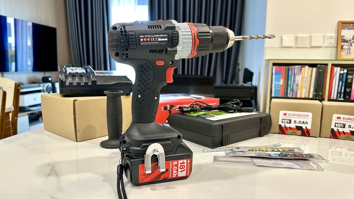 Dùng động cơ không chổi than 18V, lực xoắn 75 Nm, hộp số 2 cấp, kẹp mũi 1.5–13 mm. Trọng lượng nhẹ 1.38 kg, tay cầm phụ, đèn LED tích hợp. Tương thích pin Makita và phụ kiện Euroboor, phù hợp khoan kim loại chính xác và thao tác linh hoạt trên công trường.