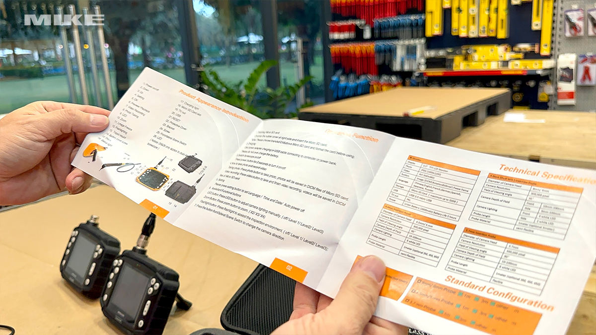 Camera nội soi công nghiệp này được trang bị một màn hình TFT màu 3.5 inch. Độ phân giải 640 x 480 pixel. Kết nối với tất cả các loại ống dẫn hỗ trợ của máy. Có 3 đèn LED có thể điều chỉnh được ở đầu ống dẫn. Giúp chiếu sáng khu vực kiểm tra.
