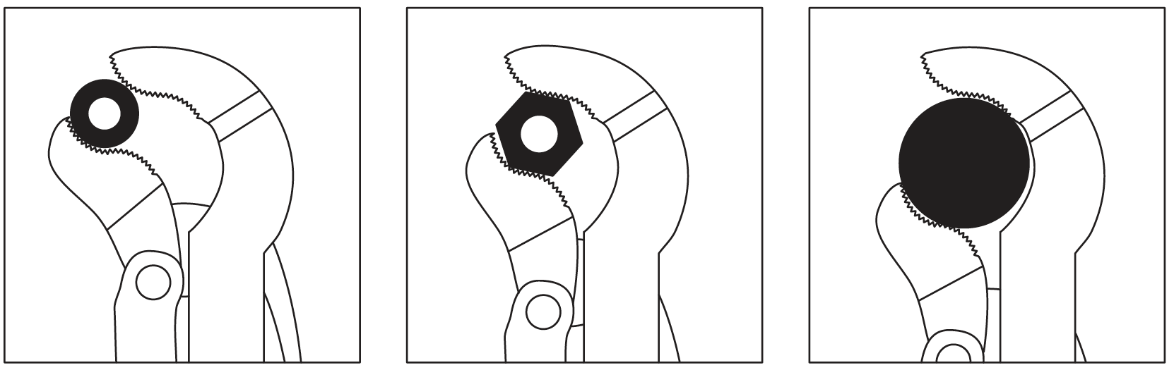 Hàm trên có kết cấu rãnh chữ V, giúp kẹp và giữ ống dễ dàng hơn. Ngàm cố định có răng gai nhỏ, thẳng và tạo thành mặt phẳng. Kìm cá sấu cán nhôm này thích hợp cho các ống kim loại mềm như nhôm, đồng hoặc ống nhựa.