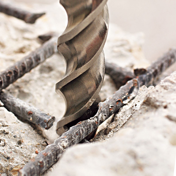 - Mũi hợp kim nguyên khối 3 cạnh cắt: Tăng khả năng xuyên phá khi gặp cốt thép trong bê tông.