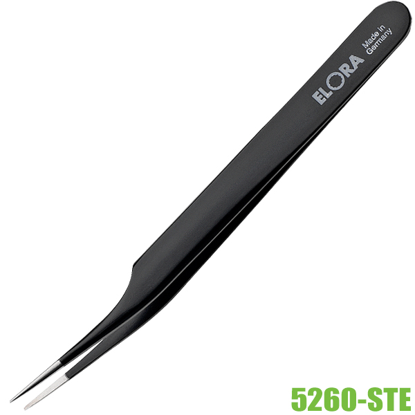 5260-STE nhíp gắp linh kiện chống tĩnh điện dài 122mm, mũi nhọn cong. Thân trơn phủ lớp cách điện bề mặt: 106 đến 109 Ω. Công dụng của loại dụng cụ này là để gắp hay kẹp các linh kiện hoặc chi tiết rất nhỏ trong việc lắp ráp, sửa chữa bo mạch điện tử.