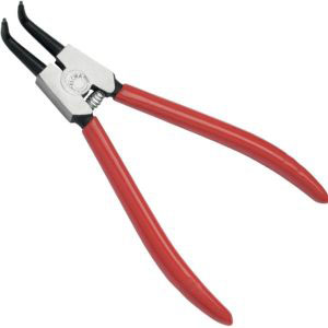 Kìm tháo lắp vòng phe ngoài trên trục không có lỗ kẹp. Đầu dẹt răng cưa tạo ma sát, tiếp xúc ổn định. Lò xo mở hỗ trợ thao tác lặp lại. Thân vật liệu thép chrome vanadium tôi dầu, chiều dài 170 mm, khe phe tối thiểu 3,6 mm.