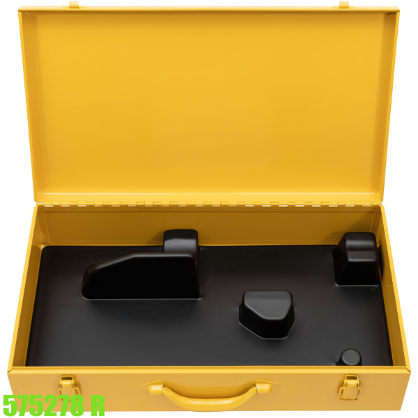 Hộp thép mã 575278 R do REMS sản xuất được thiết kế để bảo quản và vận chuyển các đầu nong cùng phụ kiện sử dụng trong hệ thống nong ống siết vòng (Q&E). Bên trong hộp có lớp lót định hình, giúp cố định các chi tiết một cách gọn gàng, tránh va đập khi di chuyển. Kết cấu vỏ ngoài bằng thép tạo độ cứng vững cao, phù hợp với môi trường làm việc có yêu cầu bảo quản dụng cụ tốt.