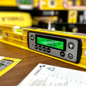 Với hai màn hình hiển thị số cho phép đo nhanh các góc nghiêng và độ dốc, thước nghiêng điện tử này còn có chức năng ULTRA-PROTECT chống bụi và nước, màn hình sáng rõ khi chạm một nút, hướng dẫn âm thanh để căn chỉnh mà không cần nhìn vào thước.